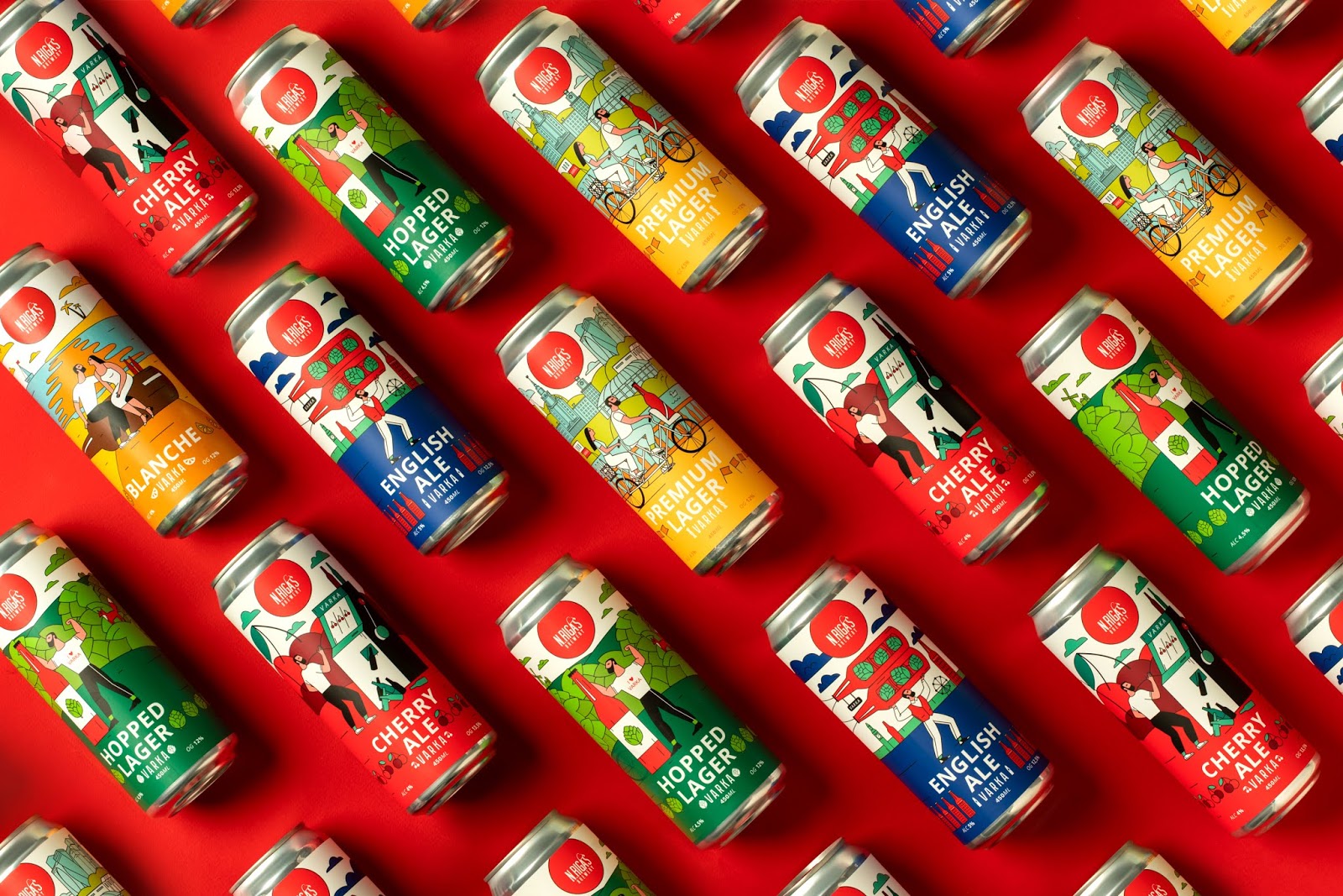 這是VARKA啤酒包裝設計,使用當下比較流行的插畫形式,描繪了商品在生活中的使用場景,用多種艷麗的顏色烘托出正向、多姿多彩的氛圍。