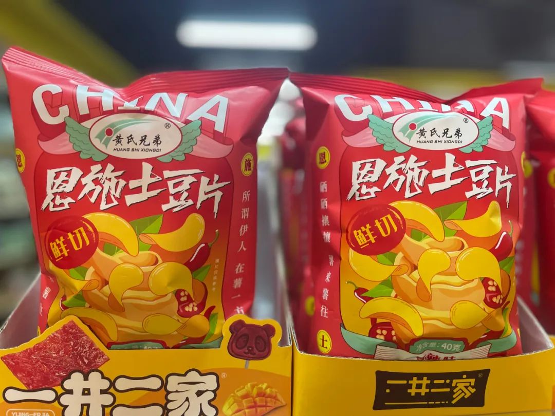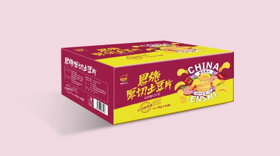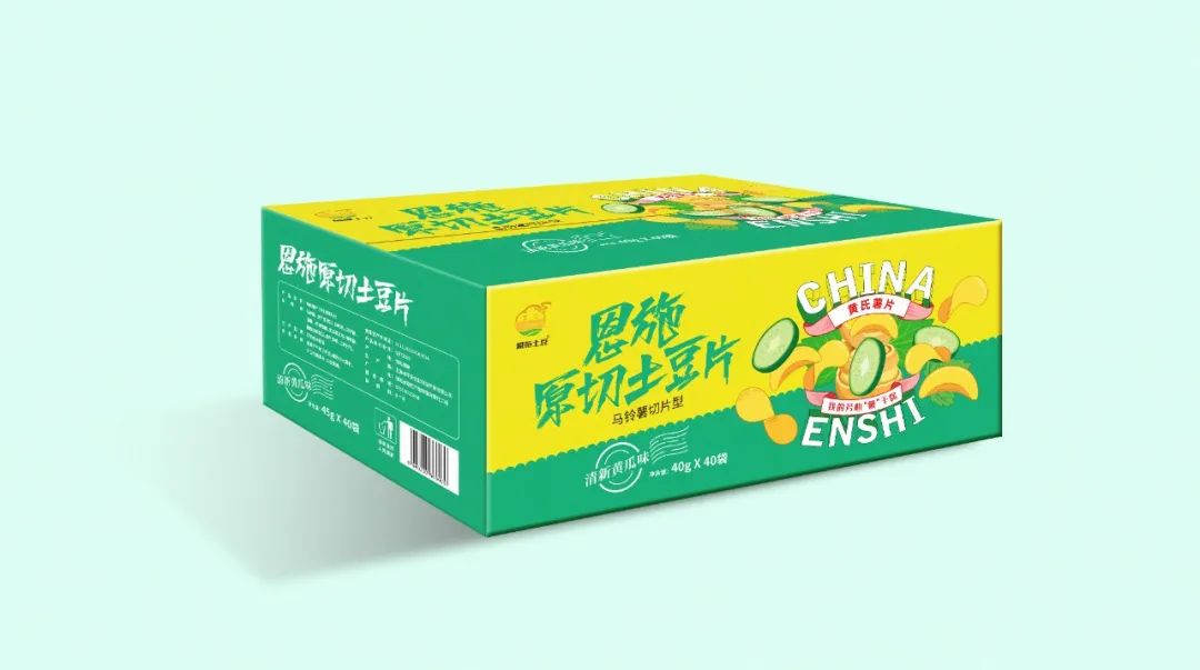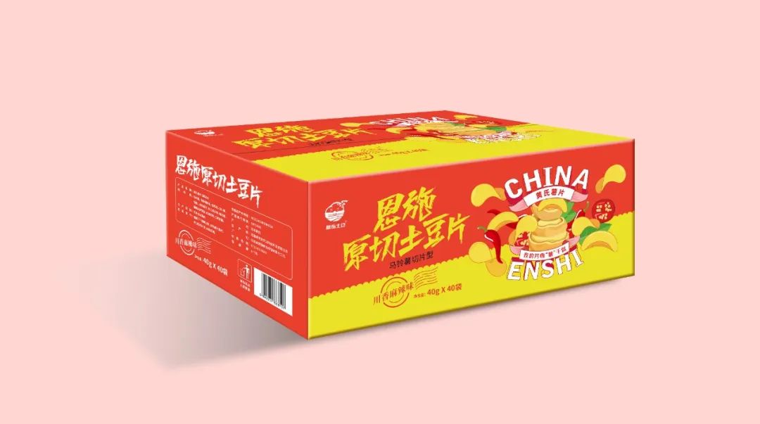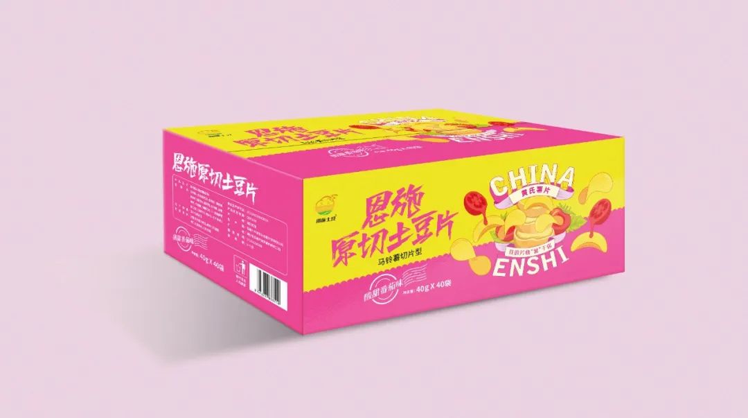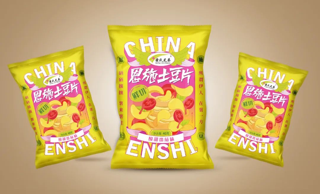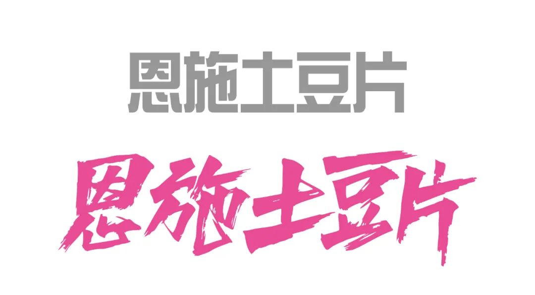 在字體選擇上,我們首先嘗試了比較粗的方正字庫黑體字。在和主標標簽匹配后由于此款字體的字重太粗,放在一米開外測試發現識別不清,主要是筆畫太粗反而影響了閱讀識別,且字形整體生硬厚重,不太適合調性。經過分析思考,我們選擇了以手寫體為基調,體現文化感,它骨骼清晰,更易識別。方向找準后,在此基礎上進行加工修正。恩施土豆片產品的特性為年輕、時尚、潮流、個性化張揚的字體和產品整體氣質很吻合。